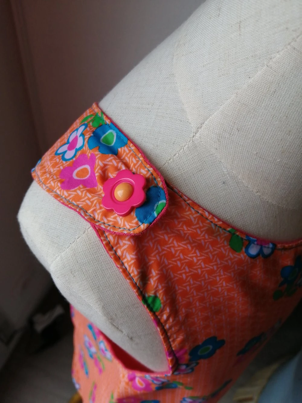 Le tissus est vintage, il arrive tout droit des années 70′!