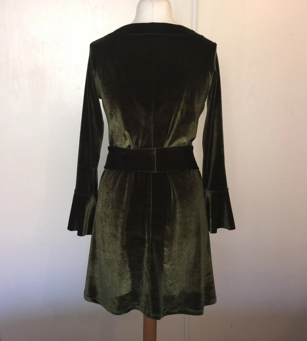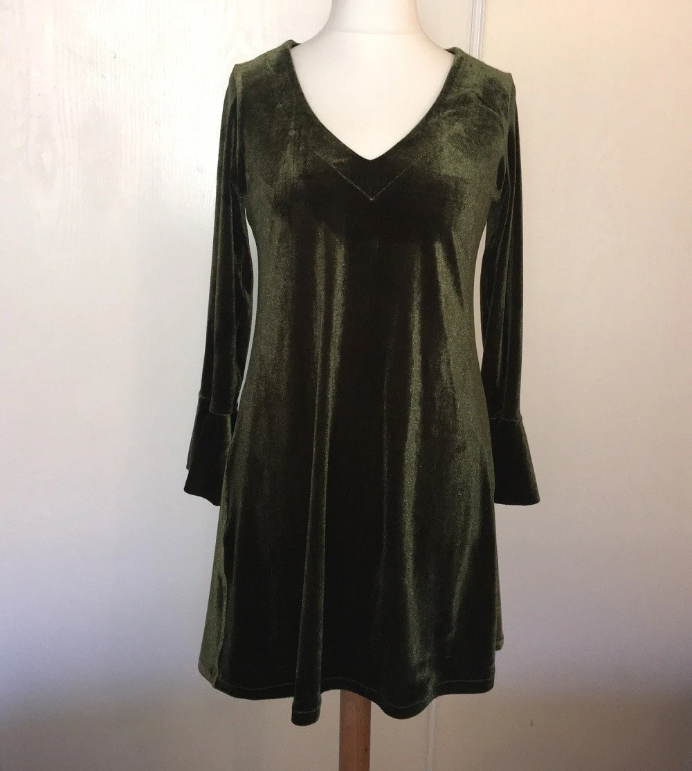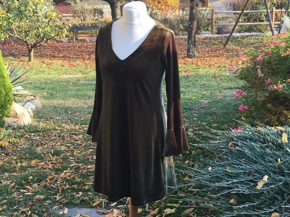 Robe trapèze ample réalisée avec un Jersey Velours kaki épais.