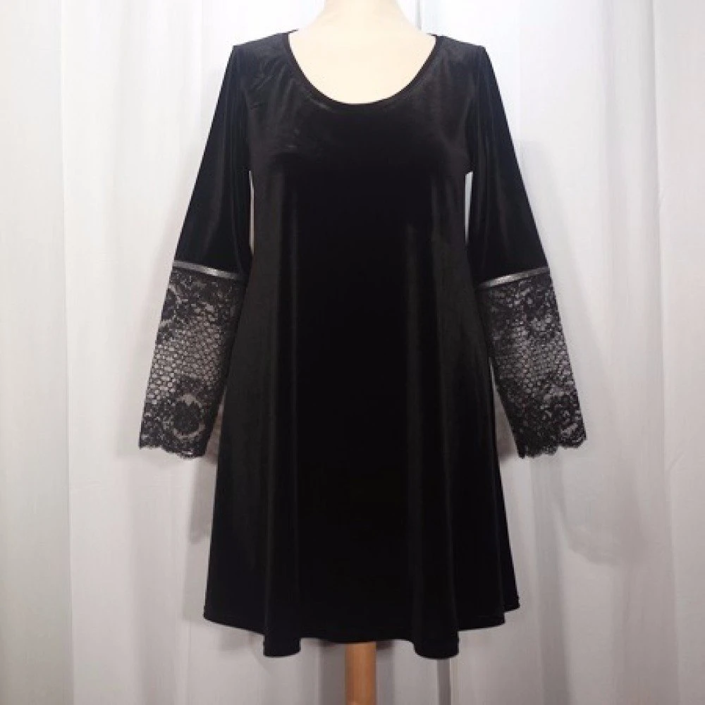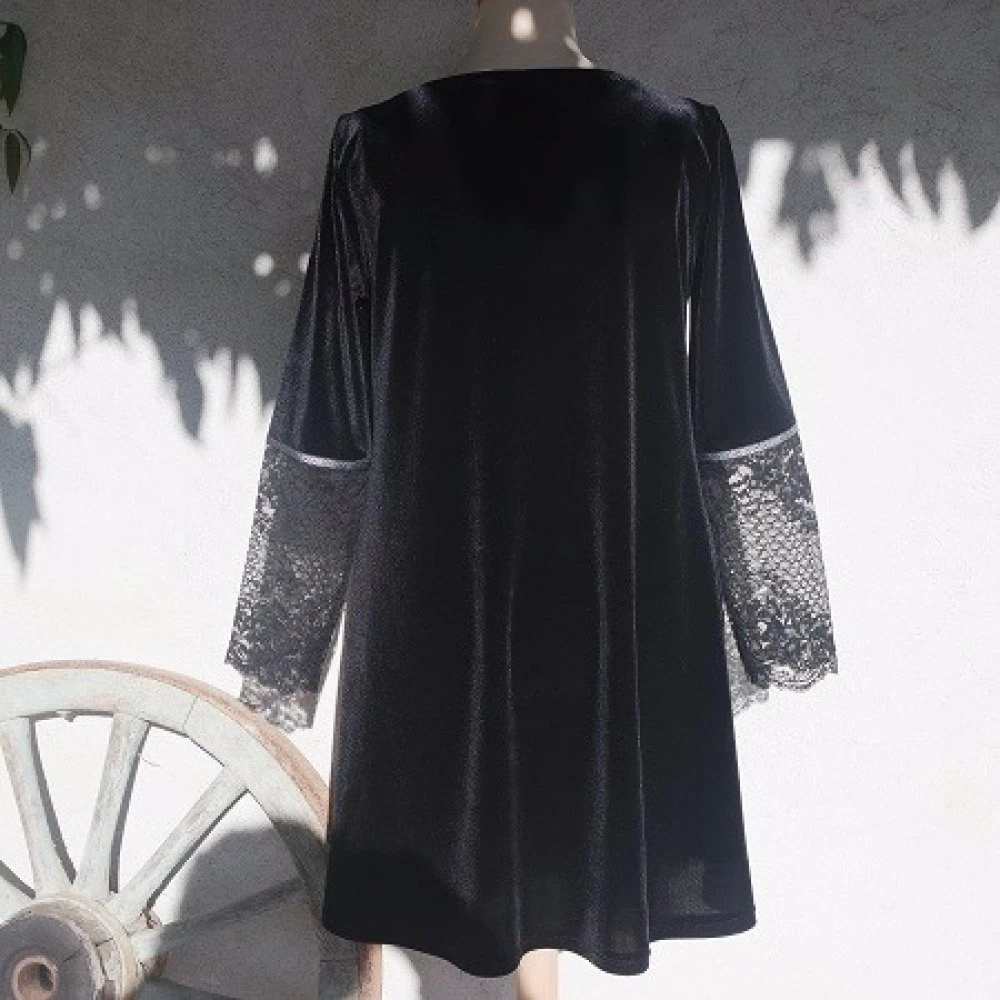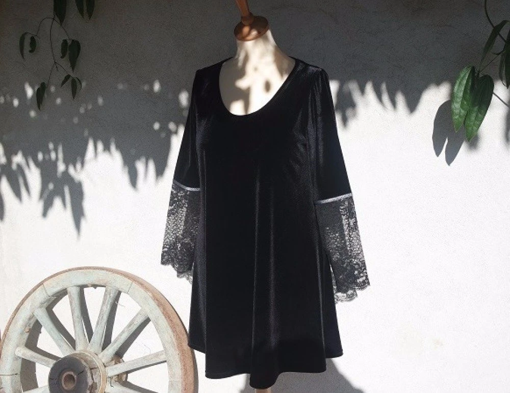 Cette petite robe noire est réalisée dans un tissu jersey velours ras noir.