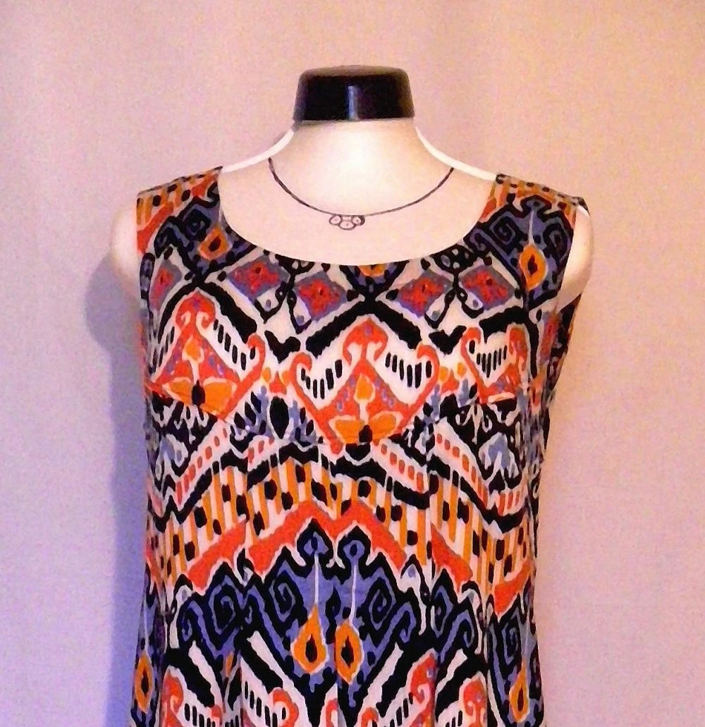 Robe courte multicolore, avec empiècement dos et devant.