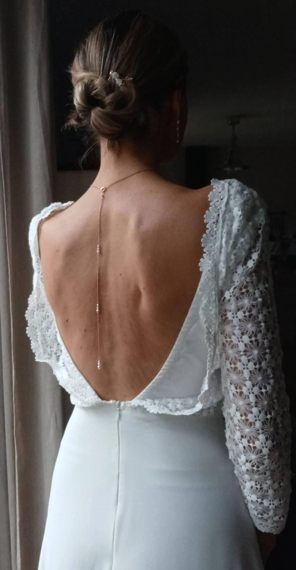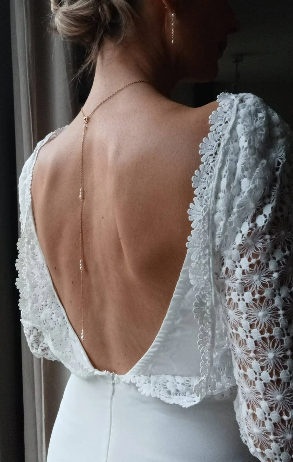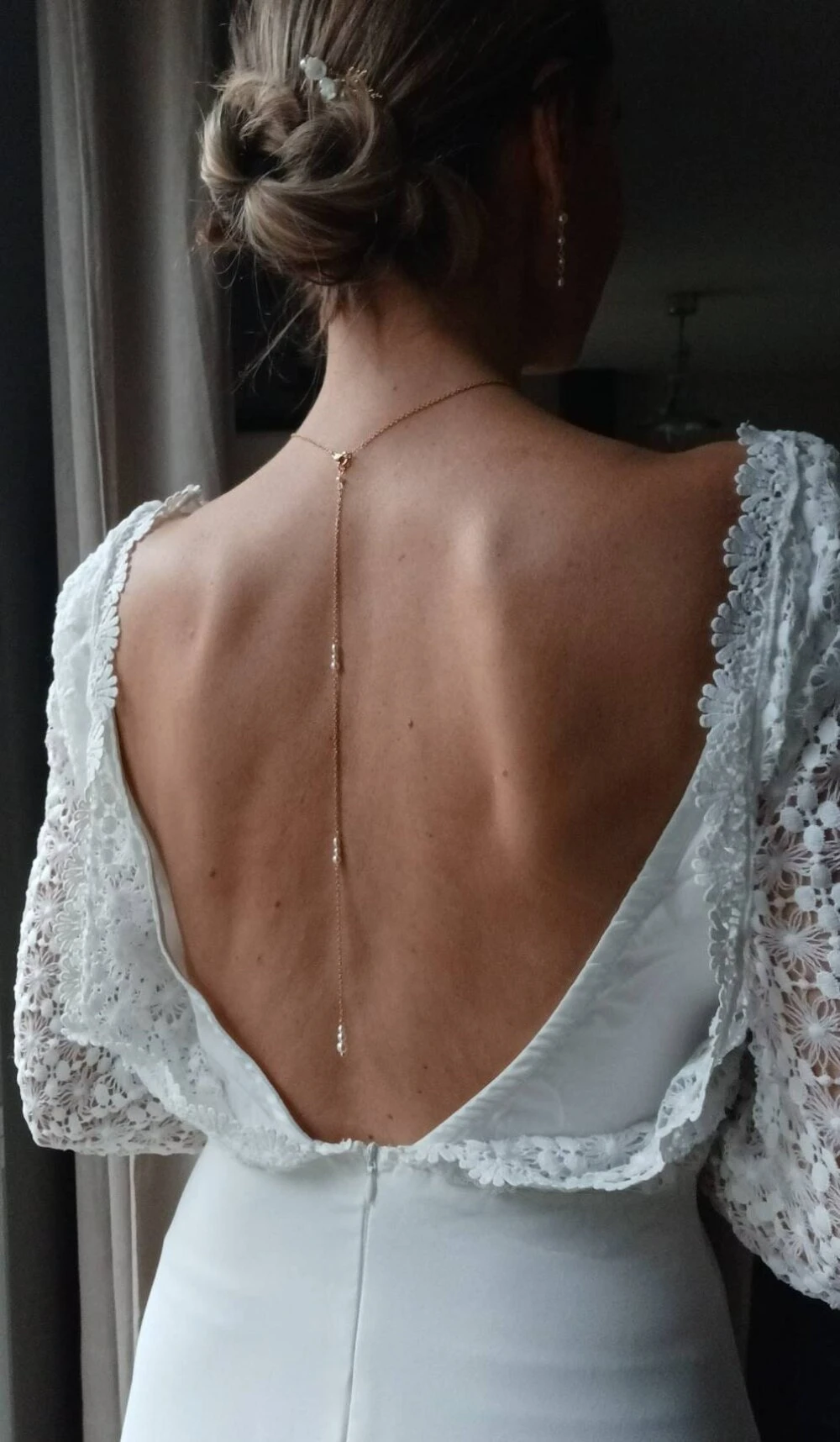 SASHA- Collier de mariée pour habiller une robe dos nu- perles nacrées blanches-bijou de dos amovible- collier de cérémonie- collection 2023.