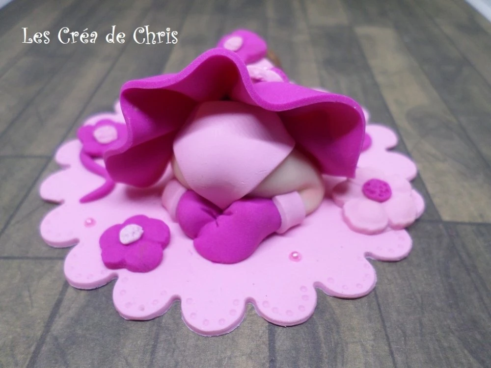 finition petite fleur fuchsia centre rose clair et demies perles rose