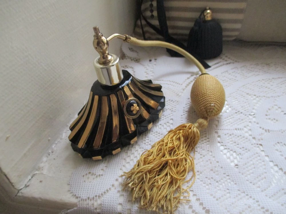 Vaporisateur poire à pompon frangé.