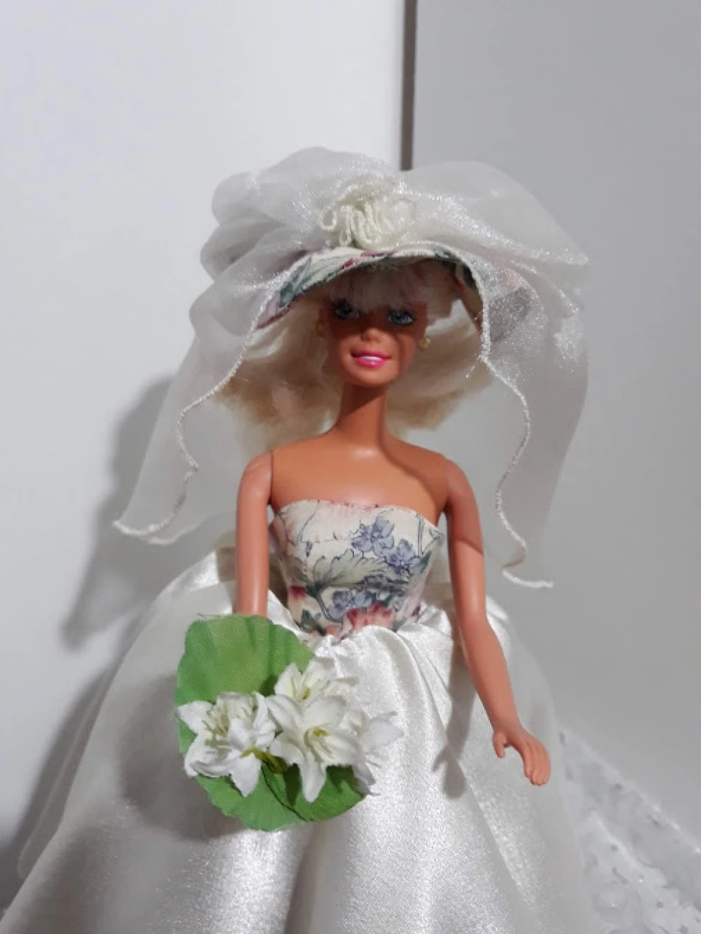 chapeau en tissu coton patch fleuri et voile en organza écru